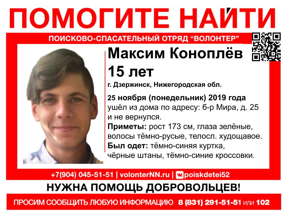 Волонтеры ищут пропавшего в Дзержинске 15-летнего Максима Коноплёва. Об этом сообщает ПСО "Волонтер".