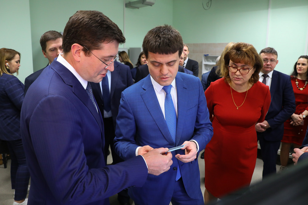 В рамках визита, Михаил Котюков и Глеб Никитин также посетили Центр инновационного развития медицинского приборостроения ННГУ им. Н.И.Лобачевского, где оценили деятельность лаборатории разработки интеллектуальных биомехатронных технологий, инжинирингового центра и центра биофизики, а также пообщались с учеными-разработчиками.