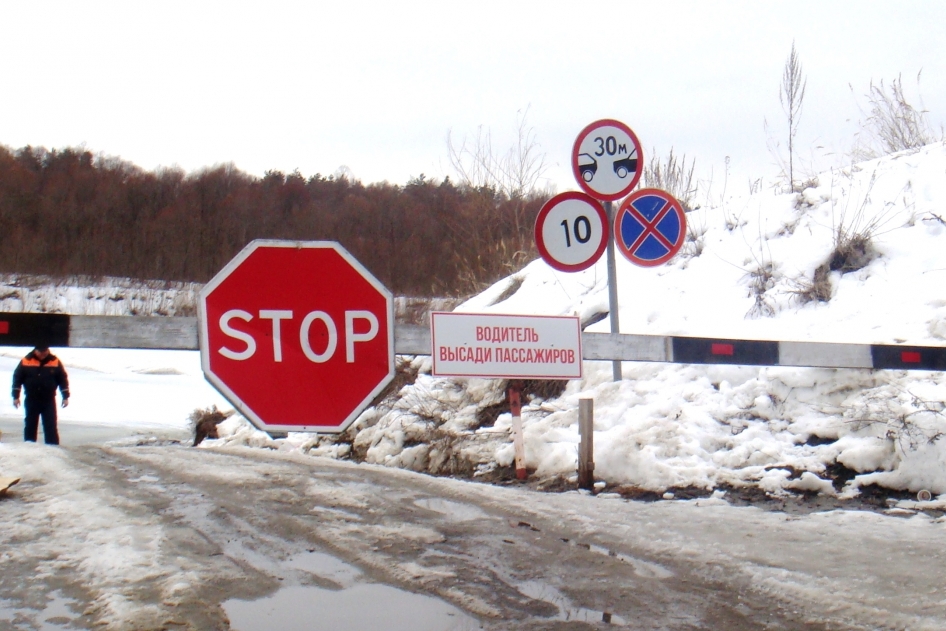 Со 2 марта эта переправа закрыта. Движение через реку на этом участке прекращено в связи с подъемом уровня воды и опасным уменьшением толщины льда. На съездах к берегу установлены запрещающие знаки и заграждения. Специалисты уже приступили к демонтажу деревянного колейного настила.