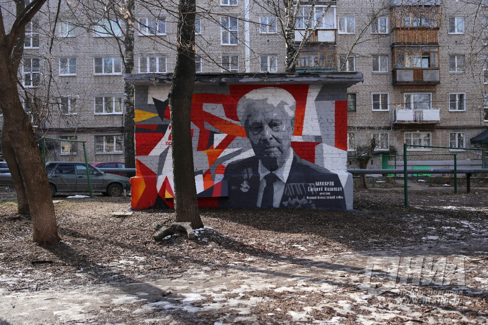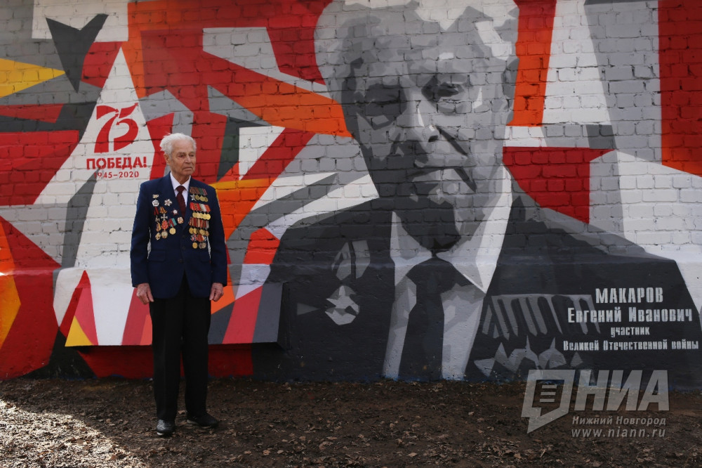 Граффити-портрет ветерана Великой Отечественной войны появился на улице Ванеева. На трансформаторной будке изображен Евгений Макаров. Это уже седьмое граффити Победы в Нижнем Новгороде. К маю этого года на электрических подстанциях должно появиться 75 портретов участников Великой Отечественной войны.