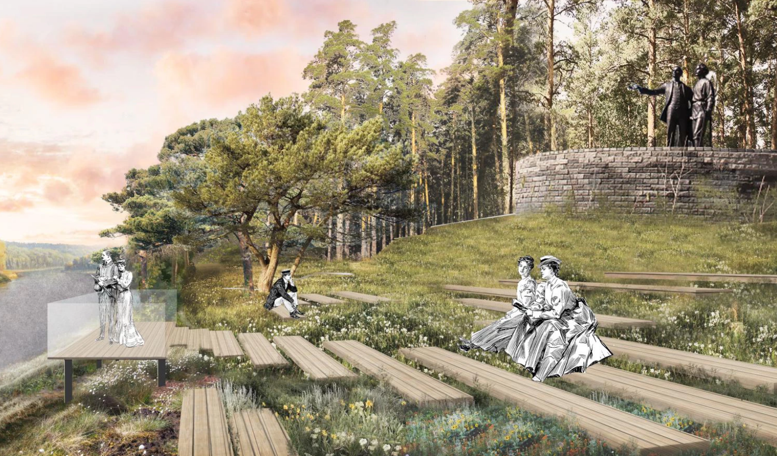 В районе памятника, согласно концепции, планируется организовать историческую зону, а также сборно-разборный амфитеатр на 120 человек.