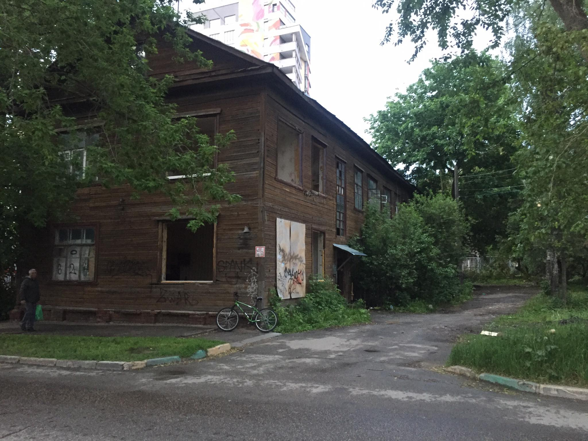 Дом расселенный. По виду, он был построен в 20-30 годы XX века, барачного типа, но он находится в непосредственной близости от объектов культурного наследия.