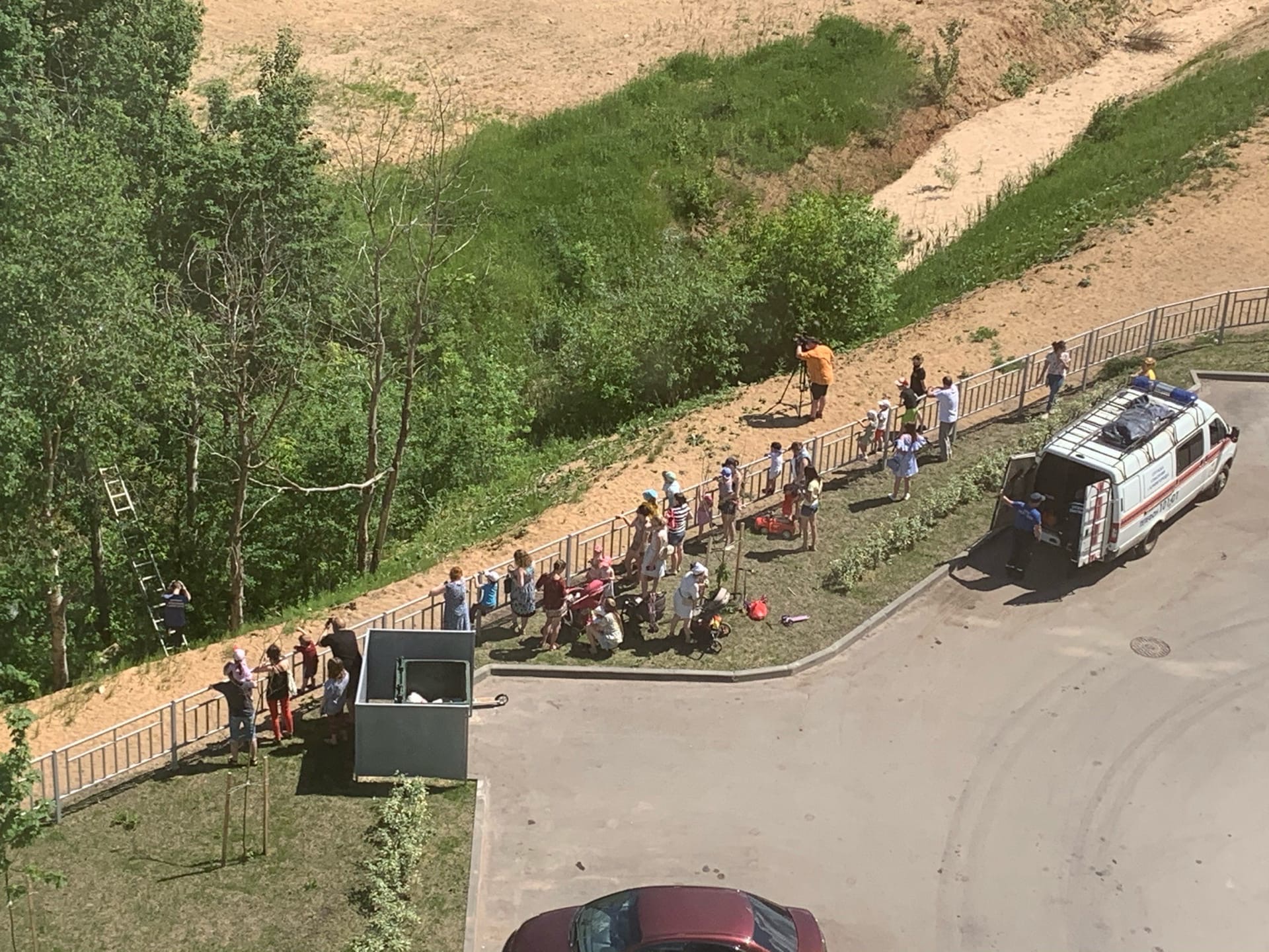"Его спускали по лестнице, и часть ступенек он даже шёл сам! Поскольку хозяин не объявился, малыша увезли в зоопарк", - рассказал очевидец.