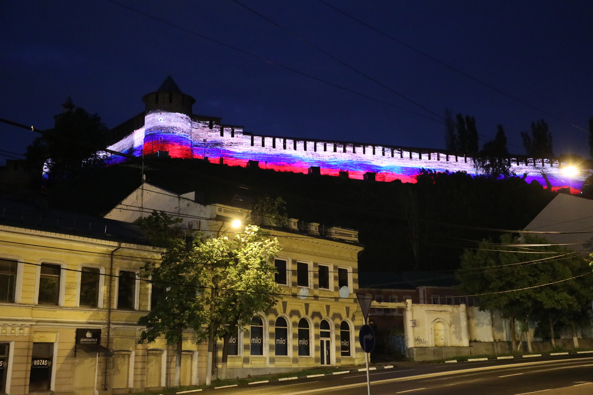 (фото: Александр Воложанин)Запись проекции российского флага на стены Нижегородского кремля можно будет посмотреть в социальных сетях министерства культуры Нижегородской области.