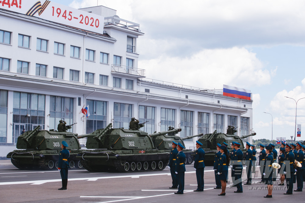 Торжественное мероприятие "Марш Победы", посвященное празднованию 75-летия Победы в Великой Отечественной войне, прошло в Нижнем Новгороде 24 июня 2020 года.
