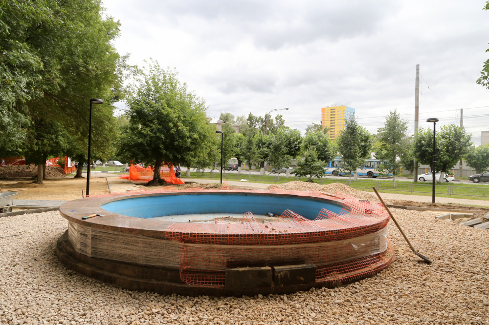 В сквере Целинников работы выполнены на треть. Здесь появятся шахматные столы, детские площадки с резиновым покрытием и разнообразными игровыми комплексами, будут устроены цветники, газоны, высажены новые деревья и кустарники. Сейчас здесь демонтируют старое покрытие, ограждения, делают освещение.