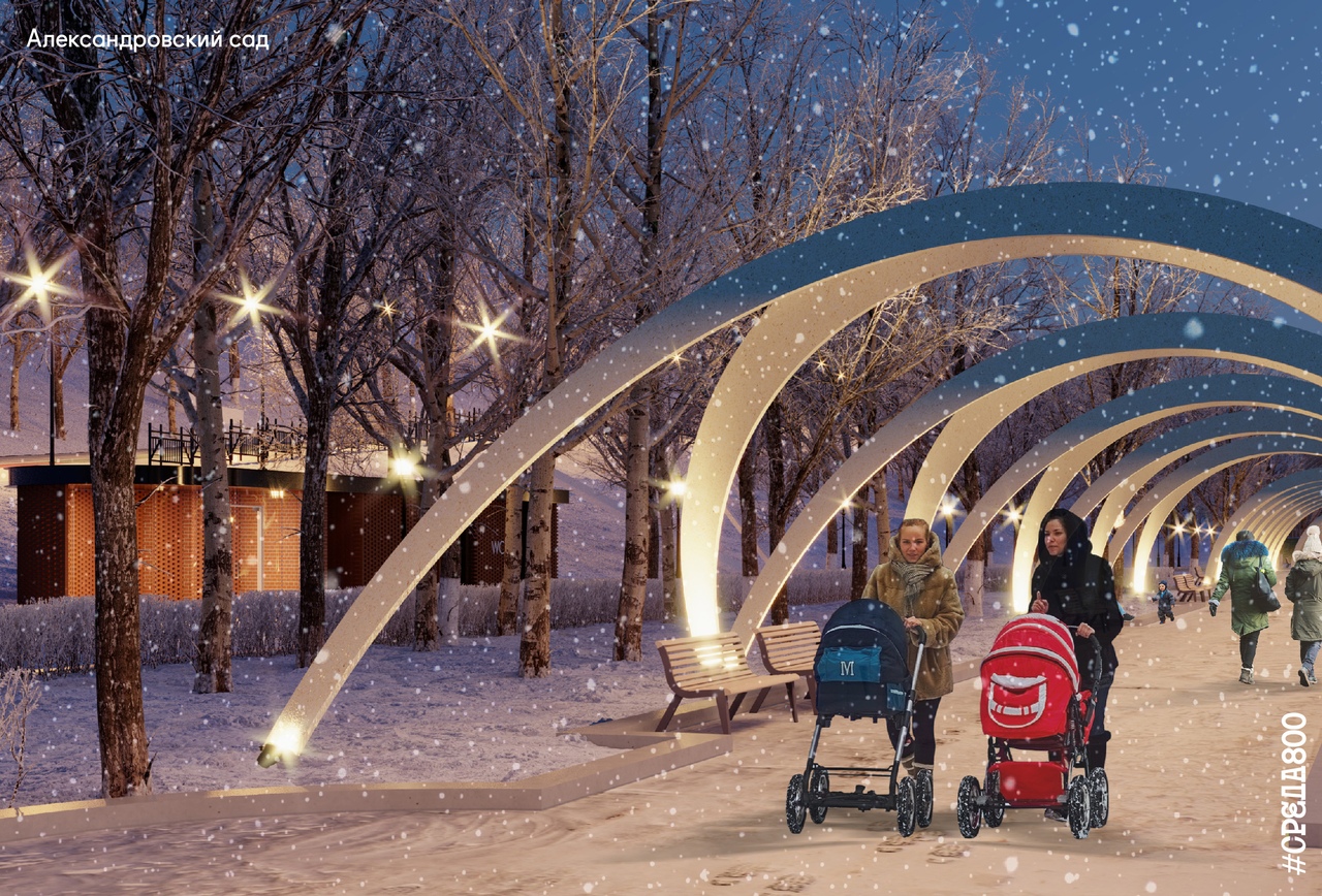 (Концепция развития Александровского сада, фото с сайта ИРГСНО, Нижний 800)Ранее сообщалось, что нижегородцы хотят в Александровском саду слушать музыку и кататься на санках.