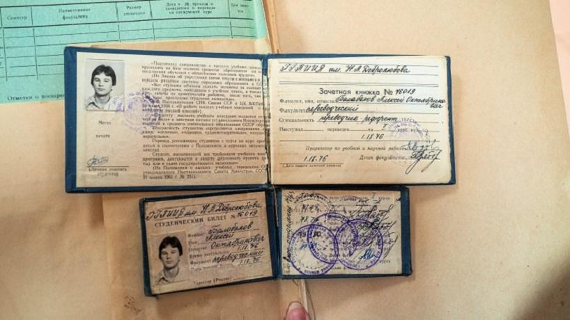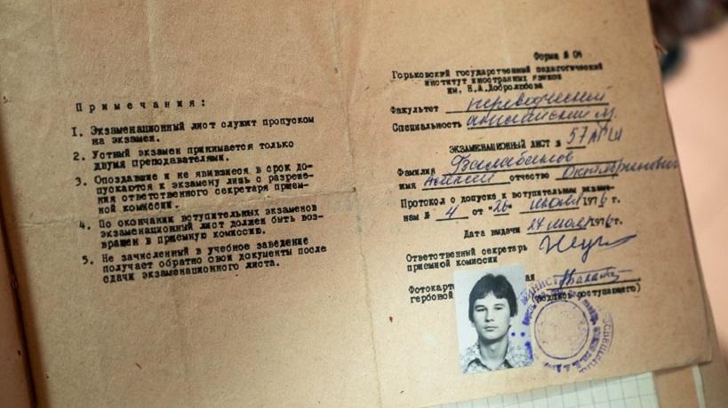 (зачетная книжка будущего режиссера, фото с сайта НГЛУ)"В те годы на переводческий факультет горьковского иняза принимали только молодых людей, так как переводчиков иняз готовил военных. Это означало строжайшую дисциплину и глубочайшее знание всех изучаемых предметов. Обратите внимание, что тема иностранных языков в фильмах Алексея Октябриновича проскальзывает периодически - а в его фильмах нет случайностей", - отметила ректор НГЛУ Жанна Никонова.