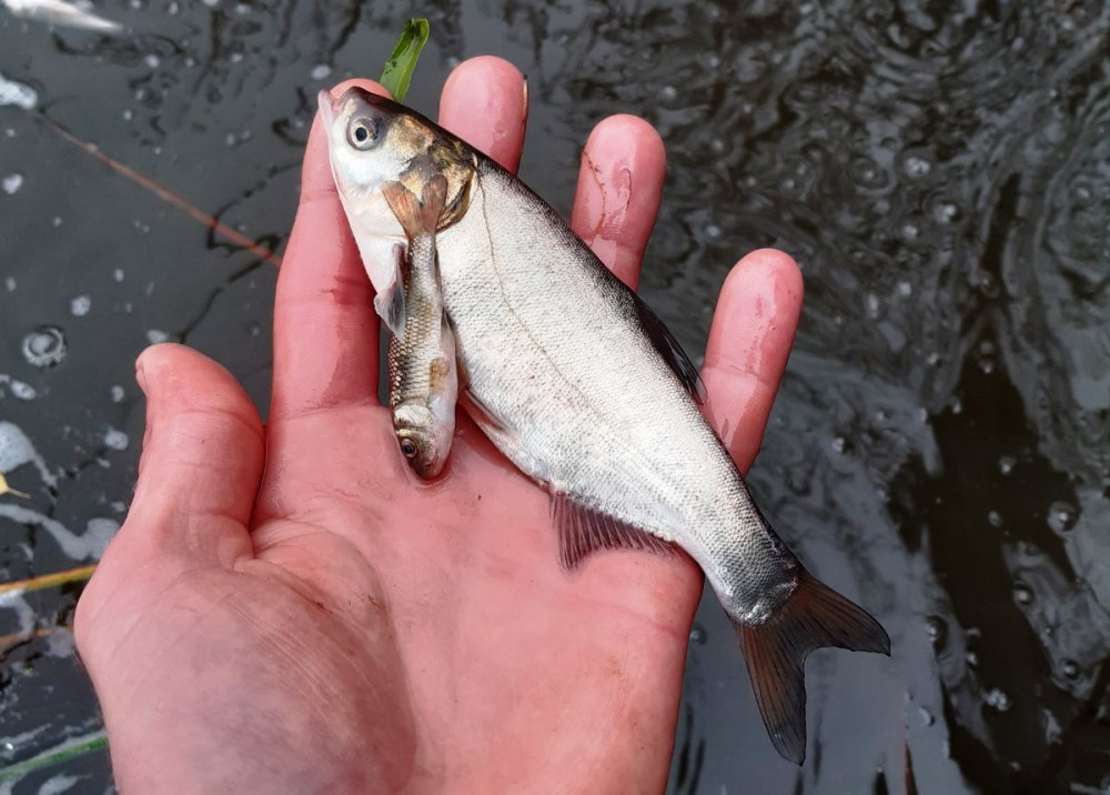 Поясняется, что "домашним поросенком" принято называть карпа - из-за его размеров, а "водяной коровой" — белого амура, поскольку питается он водной растительностью. Также в водоём выпущены мальки толстолобика.