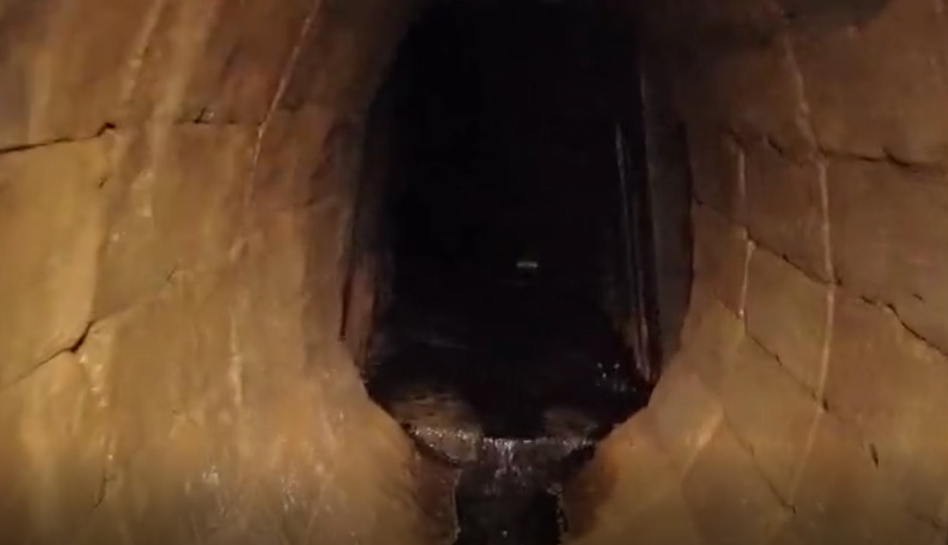 Так он отметил, что по дну штольни течет чистая вода. Только на некоторых участках видны ил и черные образования кальцита (минерала). В одном месте он обнаружил целый водопад, где вода струится из стен штольни.
