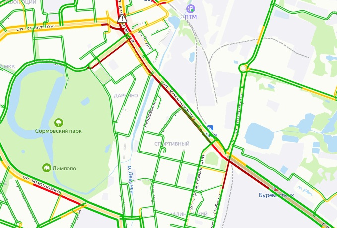 В результате, образовалась огромная пробка. Она идет от центра Сормова вдоль ул.Коминтерна и до станции метро.