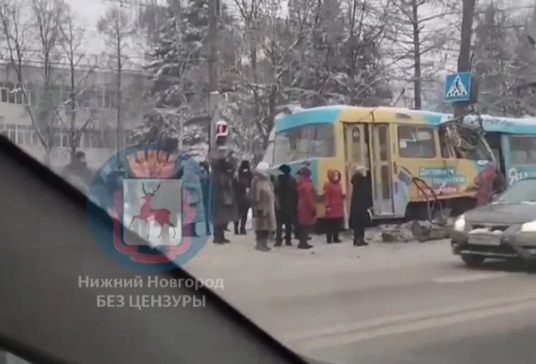 Трамвай сошел с рельсов в Нижнем Новгороде и врезался в столб. Об этом сообщают очевидцы.