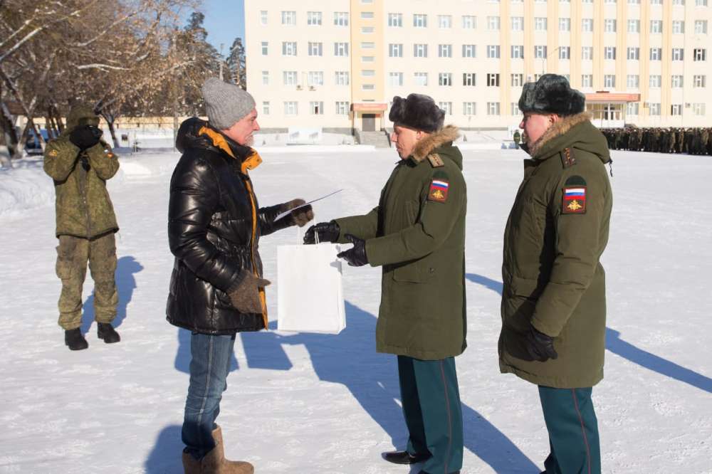 Во время торжественного построения депутат Госдумы поздравил военнослужащих с Днем защитника Отечества.