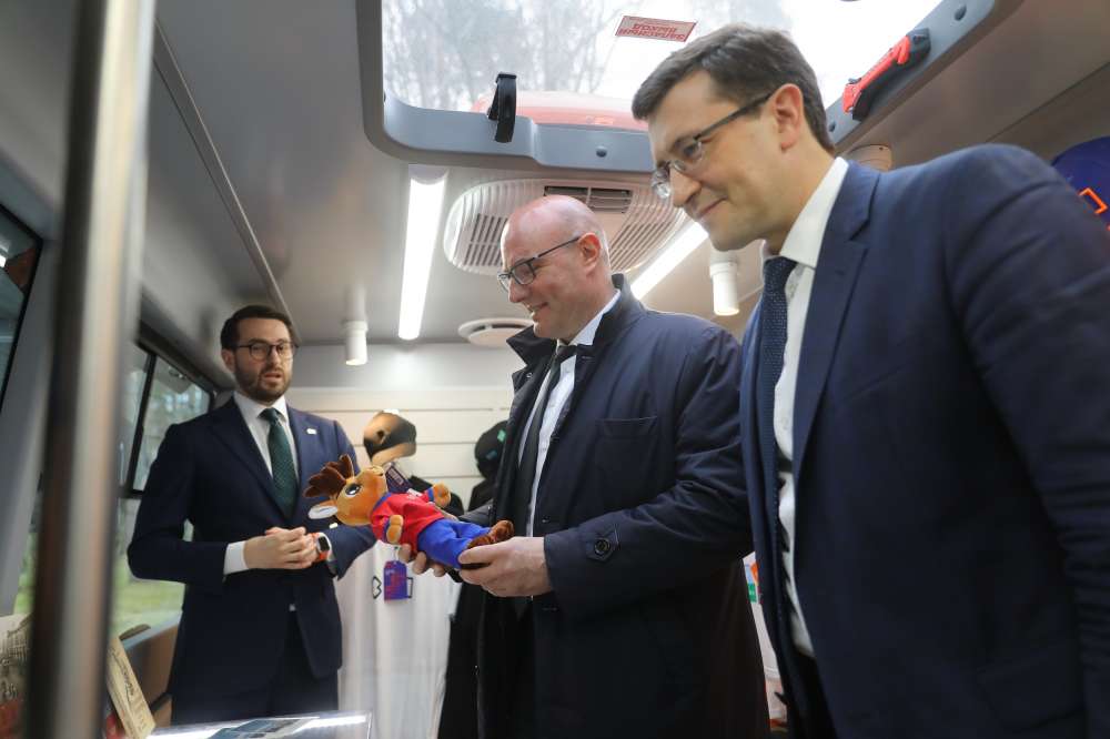 Вице-премьеру представили талисманы 800-летия Нижнего Новгорода – дятла Гор и оленя НиНо, а также мобильный маркет с сувенирной продукцией.