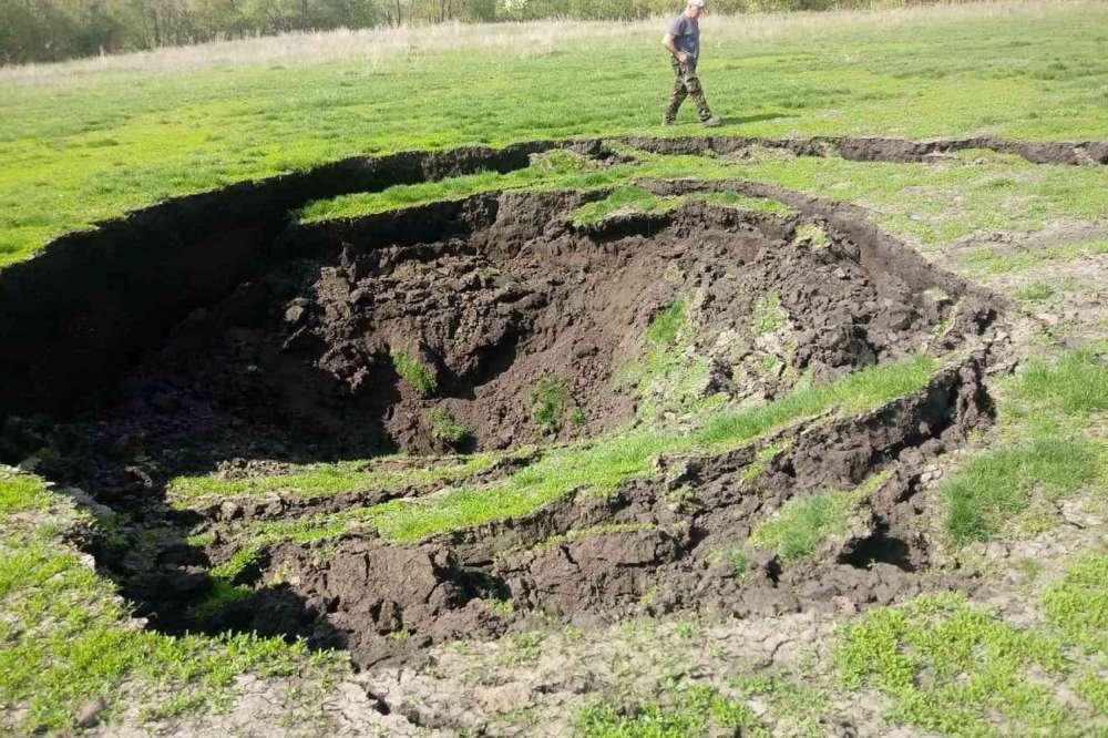 В ведомстве уточнили, что в результате произошедшего пострадавших и угрозы жилым домам нет, поскольку провал произошел на сельскохозяйственном поле в 1,5 км от с. Нехорошево.