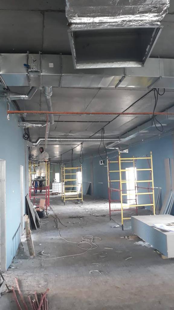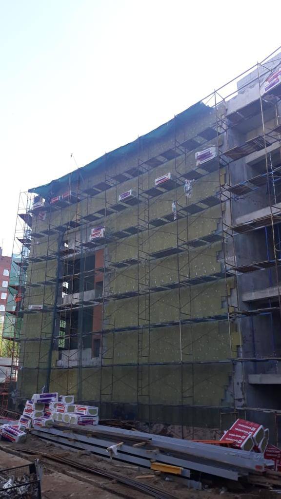 Закончилось создание внутренних сетей холодного водоснабжения, а создание систем горячего водоснабжения и отопления выполнено почти на 50%. Параллельно начинается монтаж фасадных конструкций (выполнено 12% работ) и внутренних перегородок (56%).