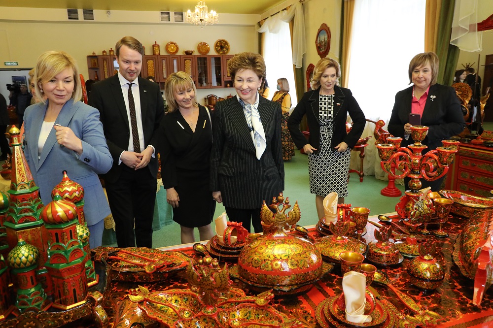 9-10 июня сенаторы РФ посетили с рабочим визитом Нижегородскую область. В его рамках в Семенове – месте традиционного бытования хохломской росписи, семеновской росписи и семеновской матрешки – состоялся выездной "круглый стол" комитета Совета Федерации по соцполитике совместно с временной комиссией Совета Федерации по сохранению и развитию народных художественных промыслов в России. Темой встречи стало создание туристических продуктов и маршрутов на основе мест традиционного бытования народных художественных промыслов на примере Нижегородской области. Кроме того, сенаторы посетили фабрику стеклянных елочных игрушек "Ариель" в Нижнем Новгороде, музейно-туристский центр "Золотая хохлома" в Семенове, фабрику АО "Хохломская роспись" и ресурсный центр на базе ГБПОУ "Семеновский индустриально-художественный техникум", где познакомились с молодыми специалистами.