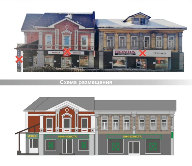 Напомним, что первые дизайн-проекты вывесок на фасадах разработали в Нижнем Новгороде для девяти улиц в 2019 году. Так, к примеру, было установлено, что в Нижегородском районе вывески должны представлять собой объемные буквы без подложки в рамке под цвет фасада.