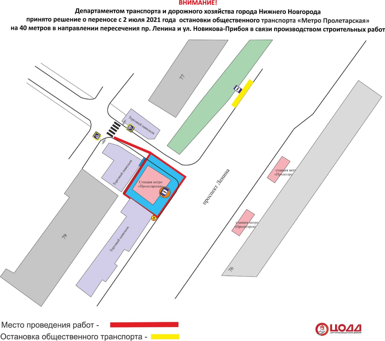 Изменения связаны с проведением работ по демонтажу павильона над сходом № 4 станции метро "Пролетарская". Они стартовали 2 июля.