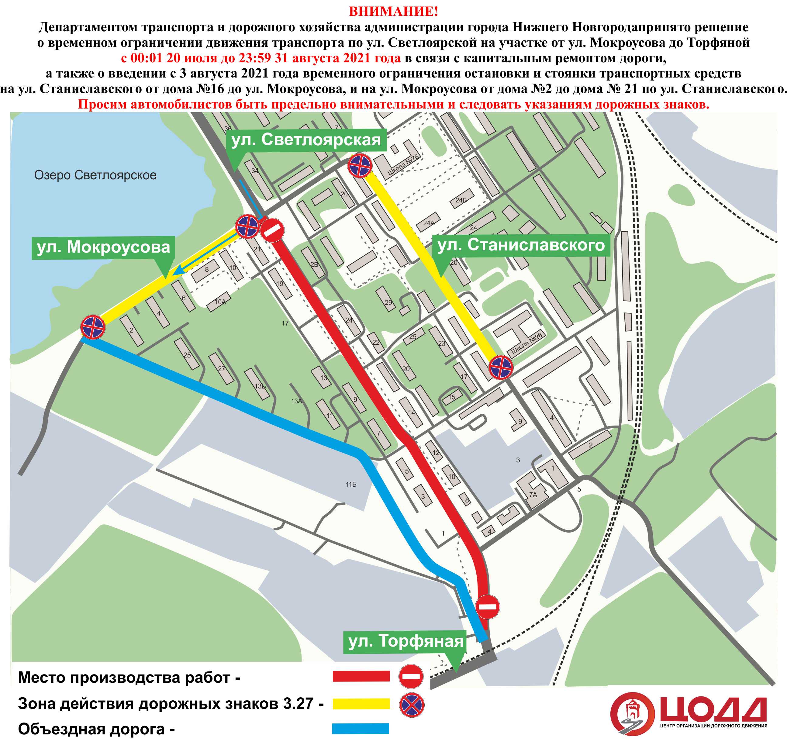 В Сормовском районе Нижнего Новгорода в связи с капитальным ремонтом дороги и переустройством инженерных коммуникаций будет временно прекращено движение транспорта по улице Светлоярской. Об этом сообщили в городском департаменте транспорта и дорожного хозяйства.