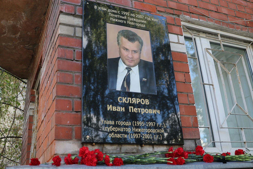 Обновленную мемориальную доску бывшему губернатору Нижегородской области Ивану Скляров открыли в Нижнем Новгороде 5 августа 2021 года. Об этом сообщает пресс-служба Гордумы.