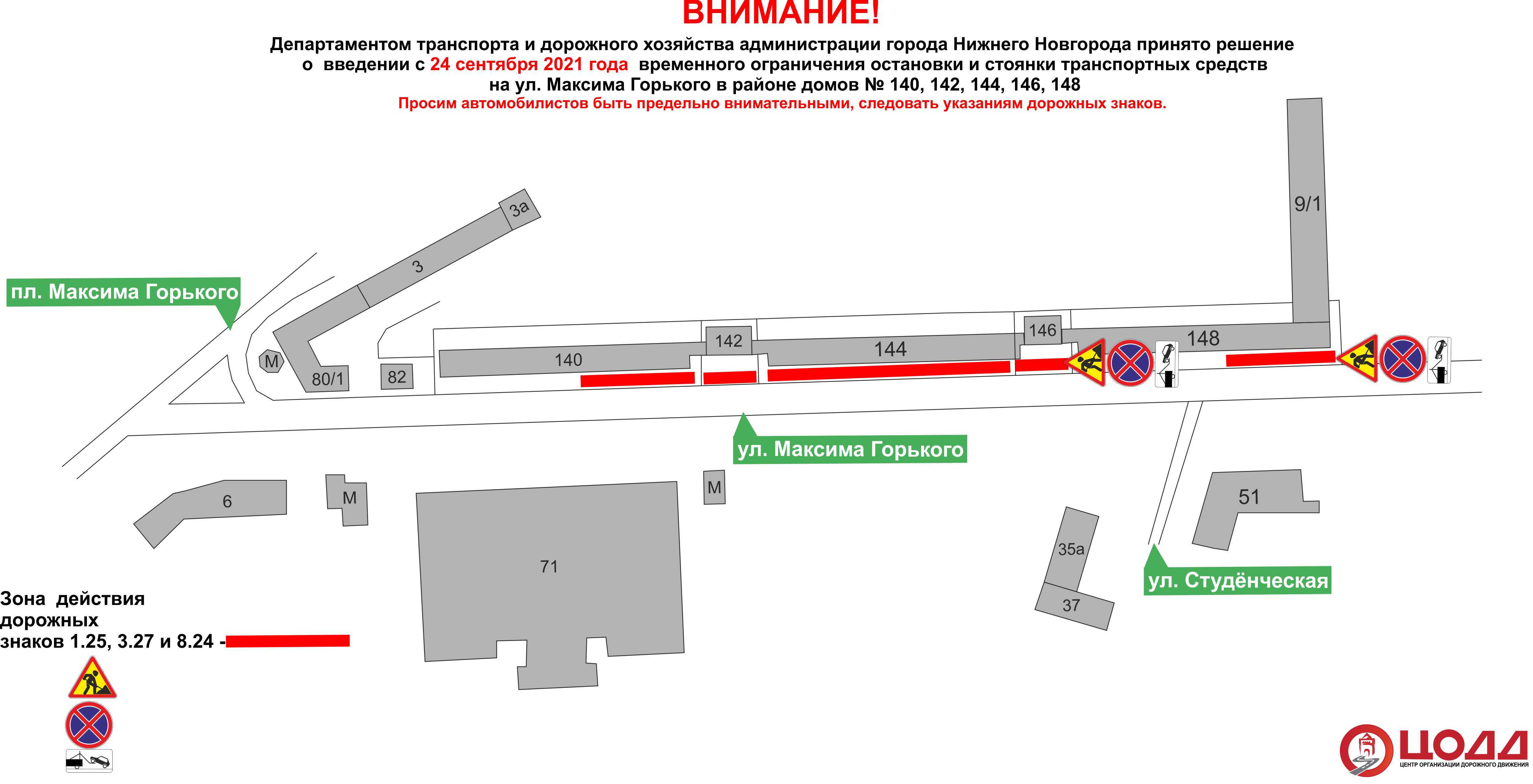 - ул. Максима Горького - на участках дороги от дома №148 до дома №140;