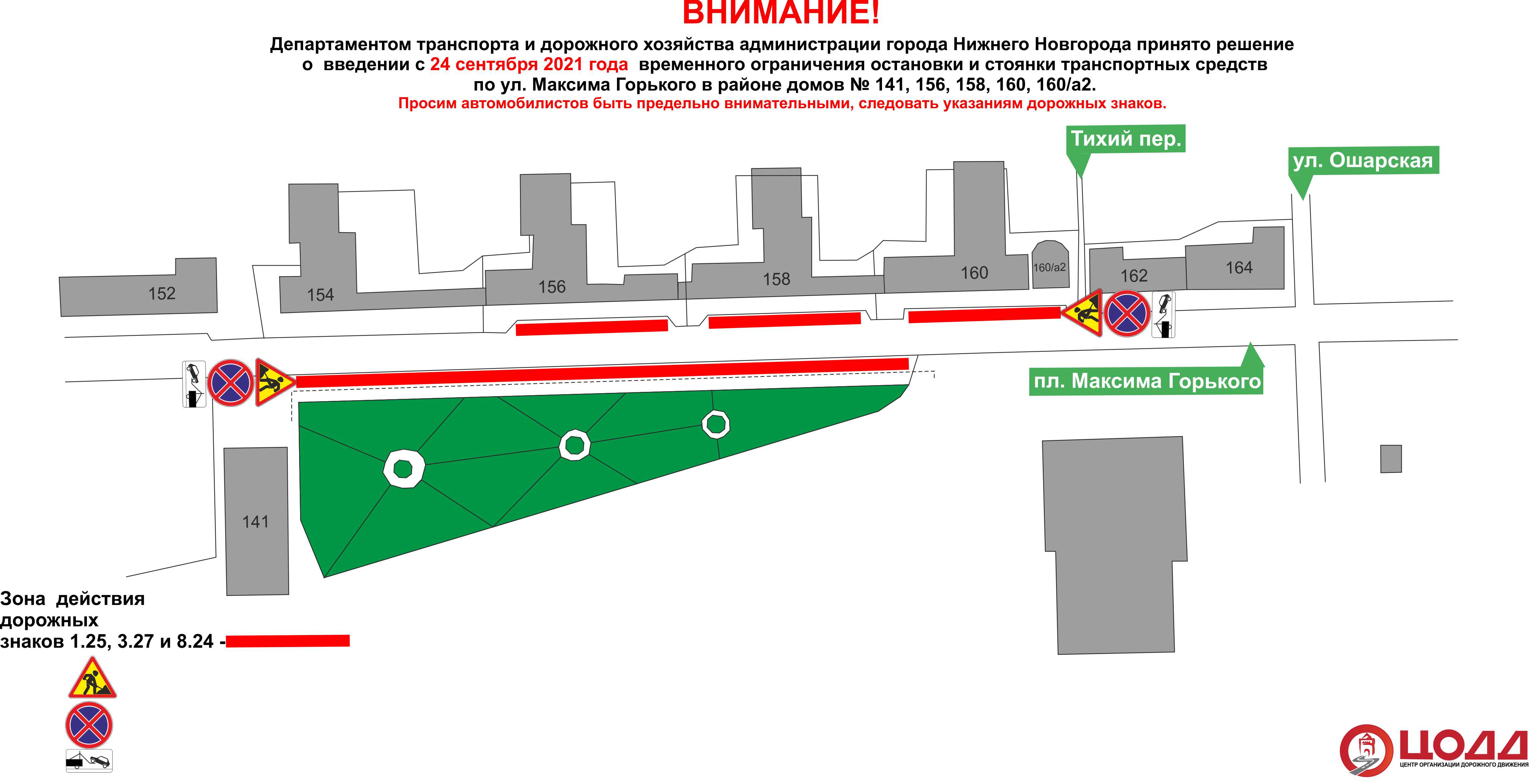 - ул. Максима Горького - на участках дороги от дома №162 до дома №154;