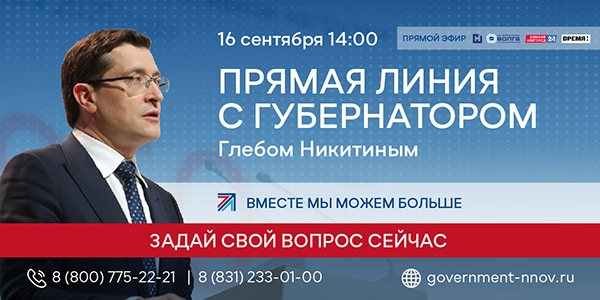 Прямая линия с губернатором Нижегородской области Глебом Никитиным пройдёт 16 сентября 2021 года. Об этом сообщает пресс-служба регионального правительства.