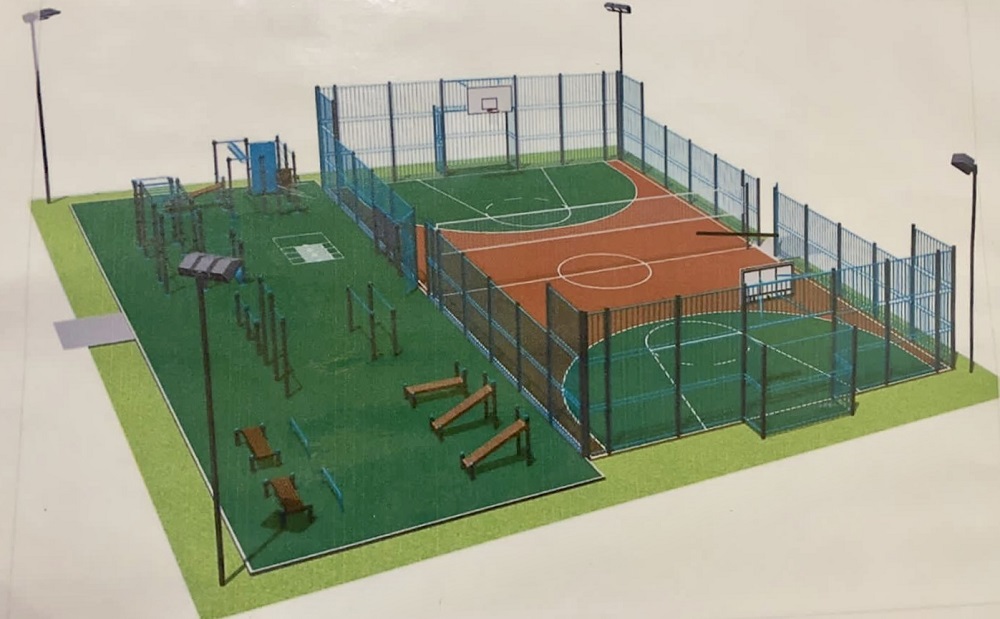 Площадка будет двухзональной. Первая - многофункциональная - часть предназначена для подвижных игр - баскетбола, волейбола, футбола и большого тенниса. Вторая зона - для общей физической подготовки: на ней установят турники, различные тренажёры. Спортивную площадку оснастят системой освещения для комфортных тренировок в тёмное время суток.