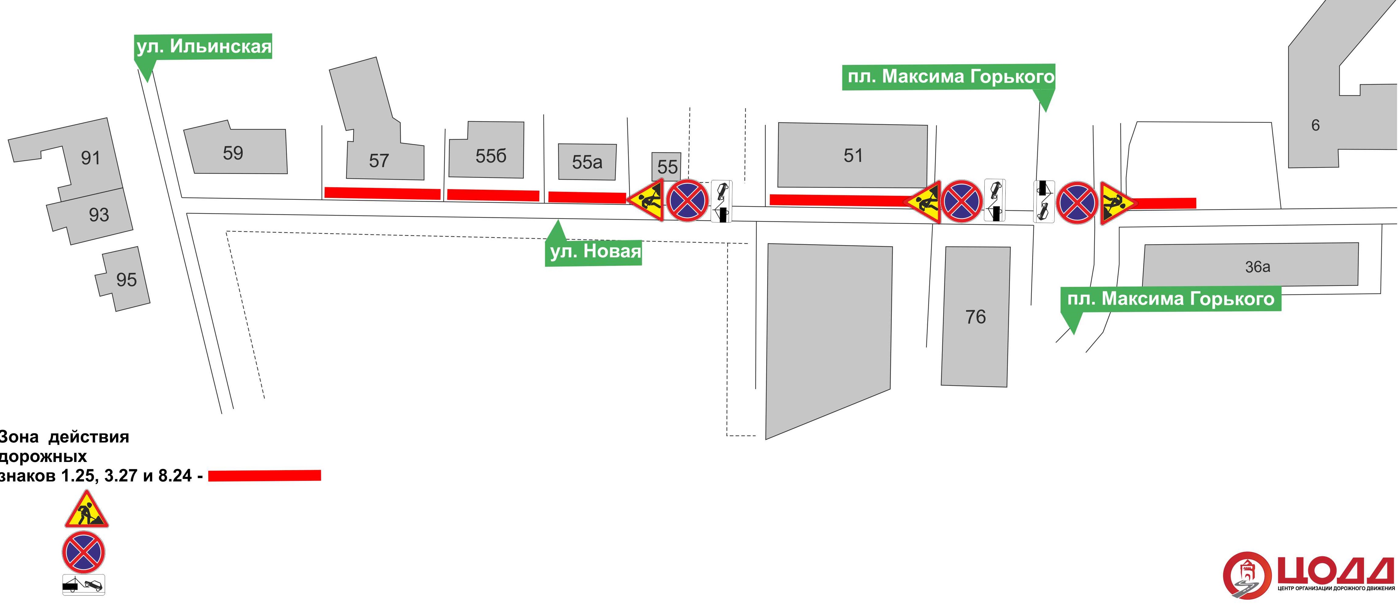 - на ул. Новой - на участке дороги от пл.Максима Горького до ул. Ильинской: