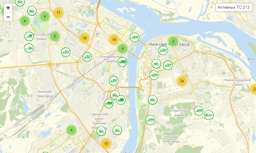 В частности, увидеть расположение спецтехники на улицах города можно на интерактивной карте "Платформы "Лобачевский".