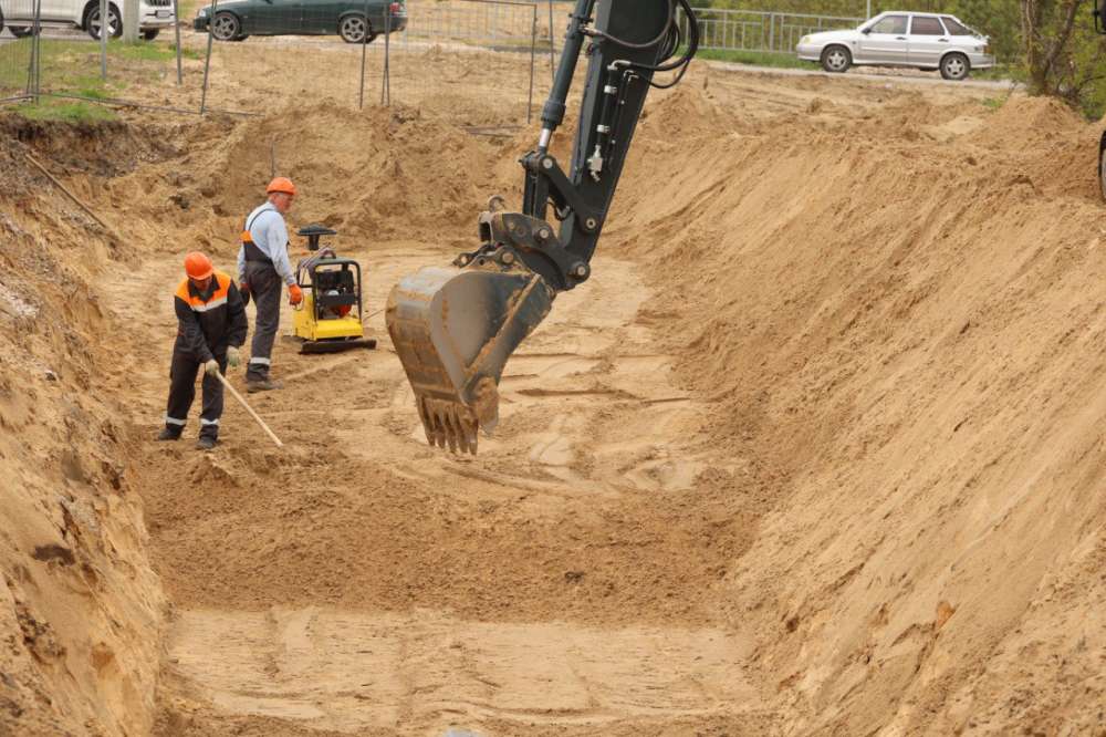 Строительство главного канализационного коллектора в настоящее время ведется от переулка Гипсового, 5б до Речного шоссе, 6, от площади Привокзальной, 2, до улицы Октябрьской, 86а, от проспекта Свердлова, 92, до улицы Удриса. На этих участках производится строительство колодцев, прокладка траншей, укладка труб и планировка территории после проведенных работ.