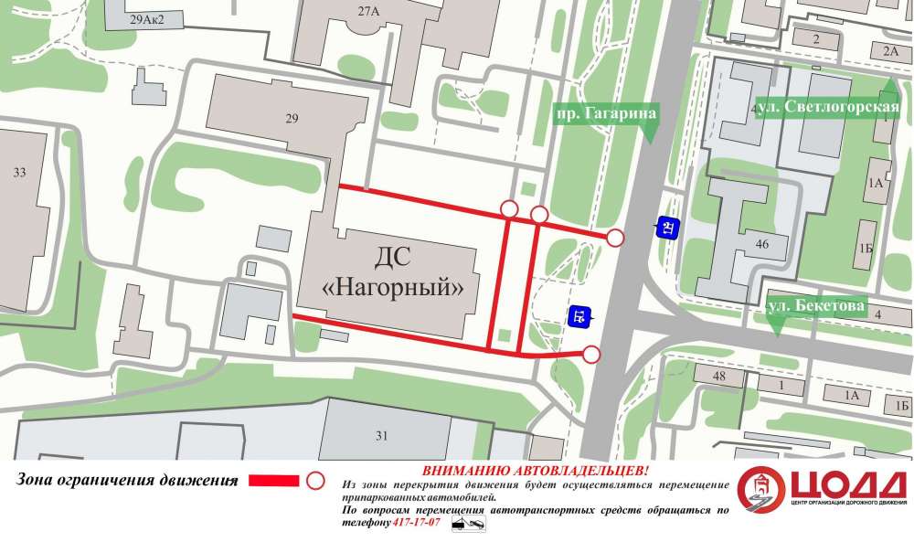 Согласно информации, ограничения в эти дни будут действовать по периметру Дворца спорта "Нагорный" (пр. Гагарина, 29) с 7:00 до 22:00.