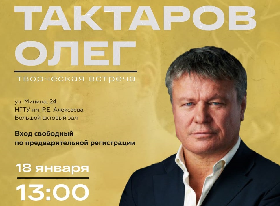 Творческая встреча с Олегом Тактаровым станет первым мероприятием, приуроченным к юбилею НГТУ им. Р.Е. Алексеева. В этом году вузу исполняется 125 лет.
