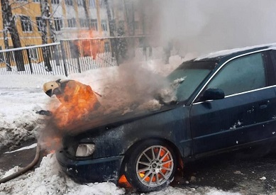 Легковой автомобиль загорелся утром 6 марта на улице Ошарской в Нижнем Новгороде.