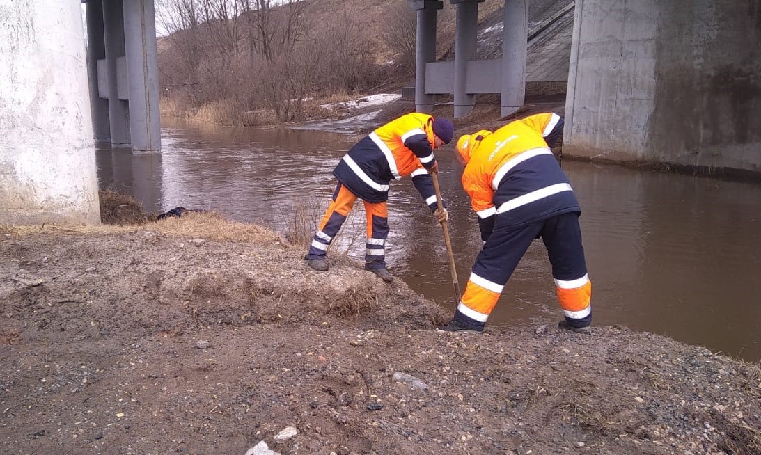 Дорожные службы расчищают от снега, льда и мусора подмостовые русла, входные и выходные водосборные сооружения и водопропускные трубы. Это позволит беспрепятственно пропускать талые воды.