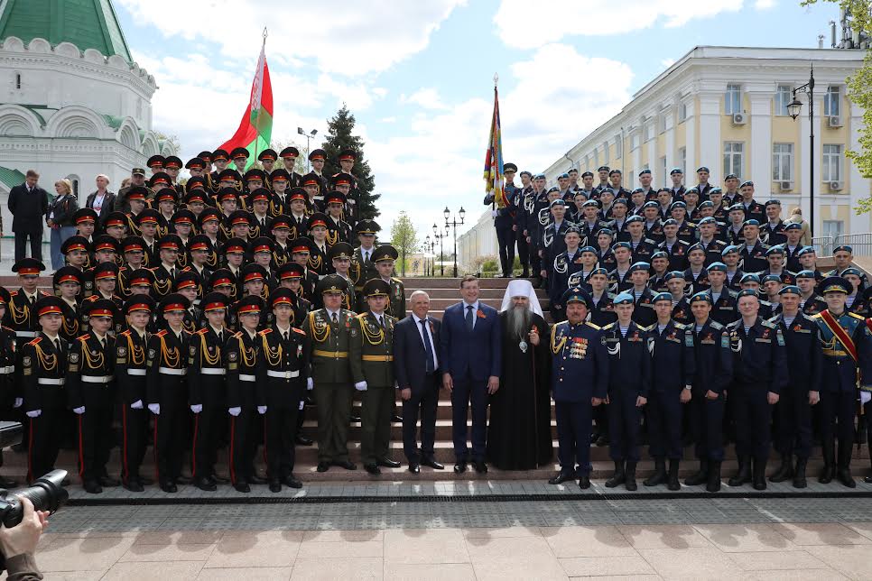 В День Победы 9 мая губернатор Нижегородской области Глеб Никитин провел встречу с воспитанниками Минского суворовского военного училища и Нижегородского кадетского корпуса ПФО им. В.Ф. Маргелова, которые принимали участие в военном параде на площади Минина и Пожарского.