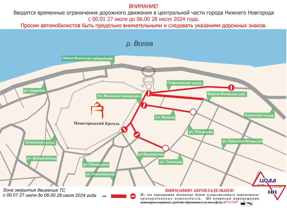 - по площади Минина и Пожарского на участке от улицы Варварской до Верхне-Волжской набережной,