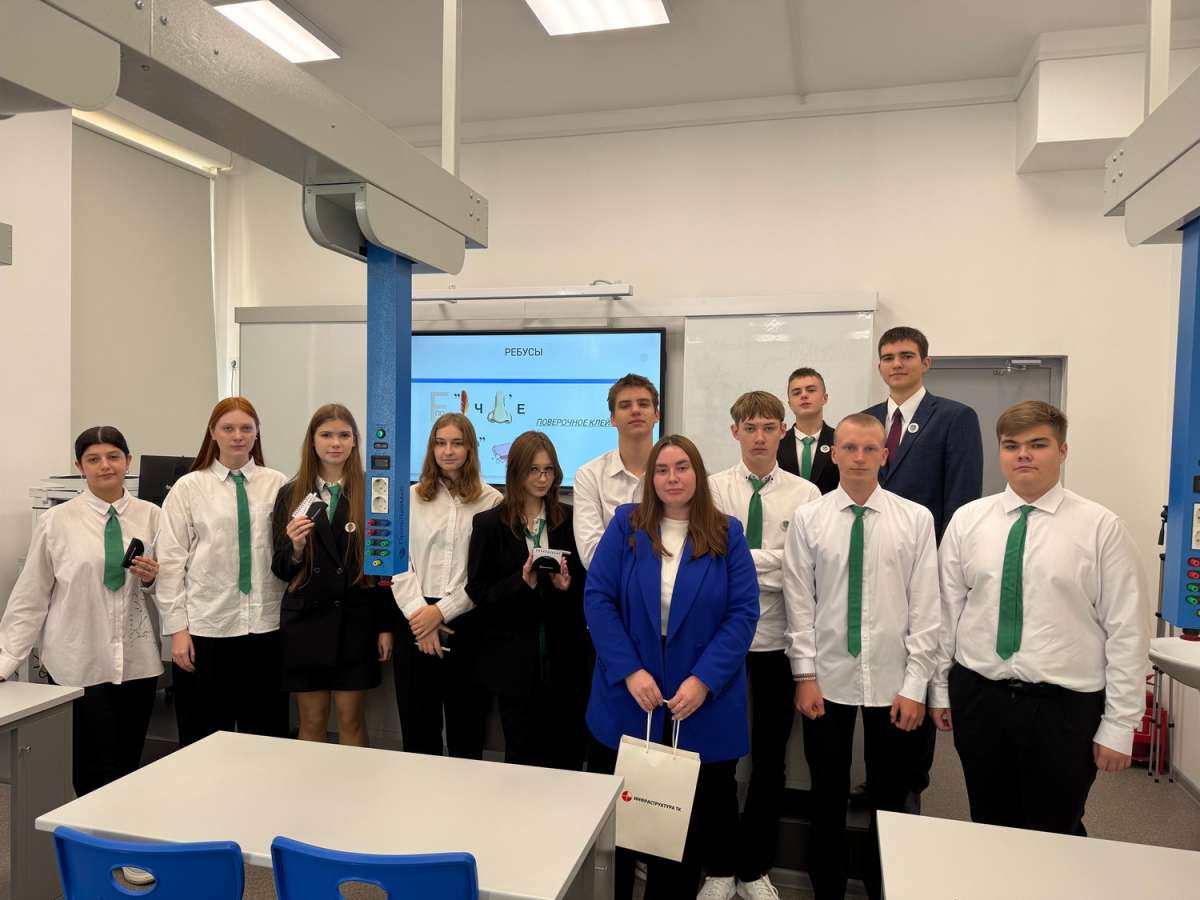 Обучающиеся нового профильного класса произнесли клятвы юного метролога и исполнили метрологический гимн. Детям также вручили памятные значки.