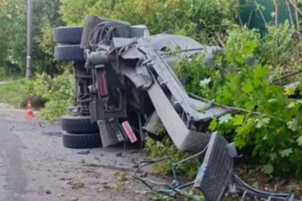 В Кстовском районе Нижегородской области произошло дорожно-транспортное происшествие с участием автомобиля-бетономешалки марки Scania.