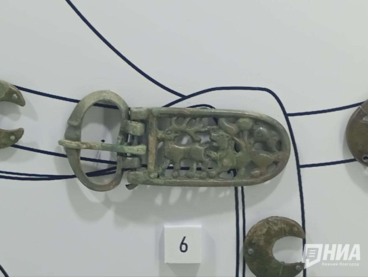 Вторая находка — пряжка с изображением оленя в скифском зверином стиле, символически перекликающаяся с гербом Нижегородской области.
