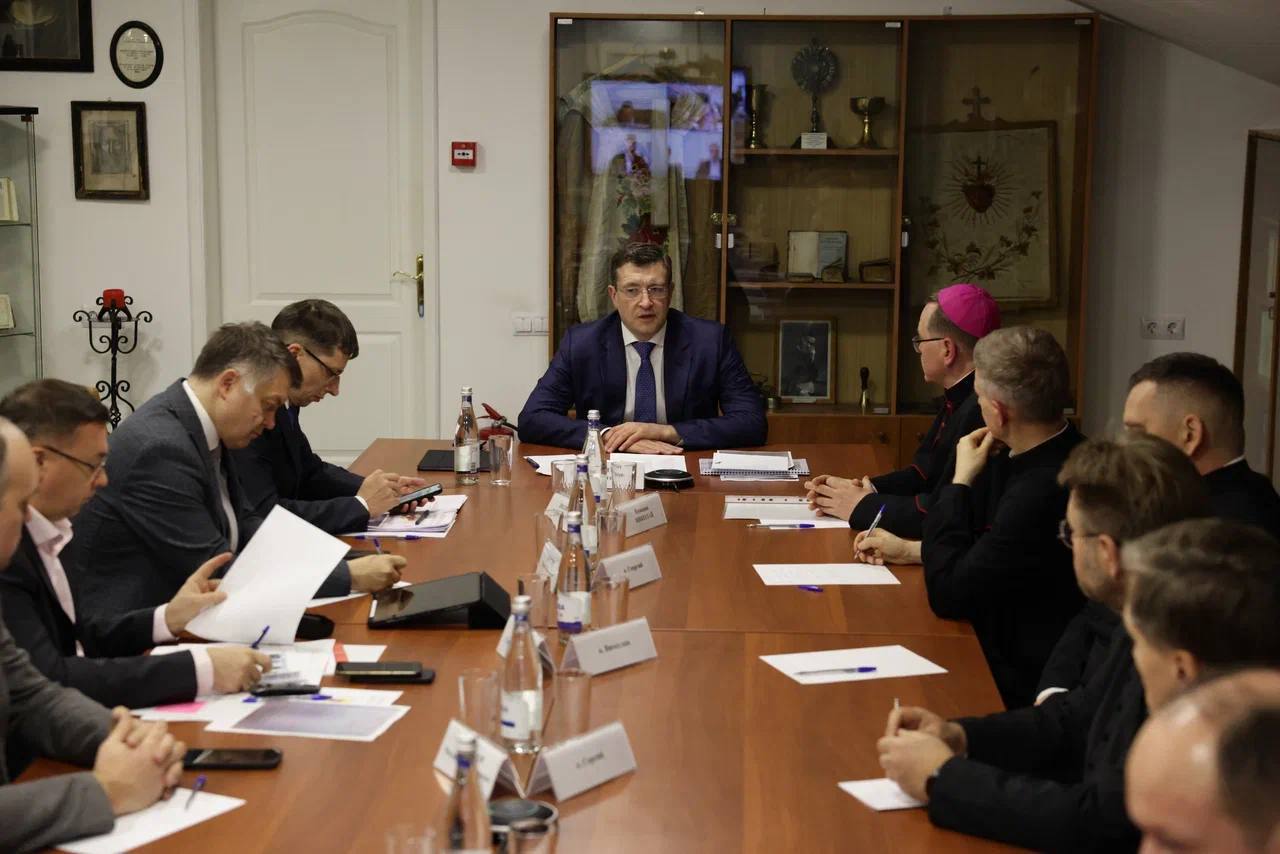 Губернатор напомнил, что недавно приходу вернули здание, где до революции находился главный католический храм города, было передано католическому приходу. Ранее в нем располагались офисы, однако теперь предстоит масштабная работа по восстановлению исторического объекта. По словам Глеба Никитина, епископ Архиепархии Божией Матери в Москве Николай сообщил, что в ближайшее время начнется разработка проекта. В будущем храм станет центральным элементом Студеного, или, как его еще называют, католического, квартала. А саму территорию ждет комплексное развитие.