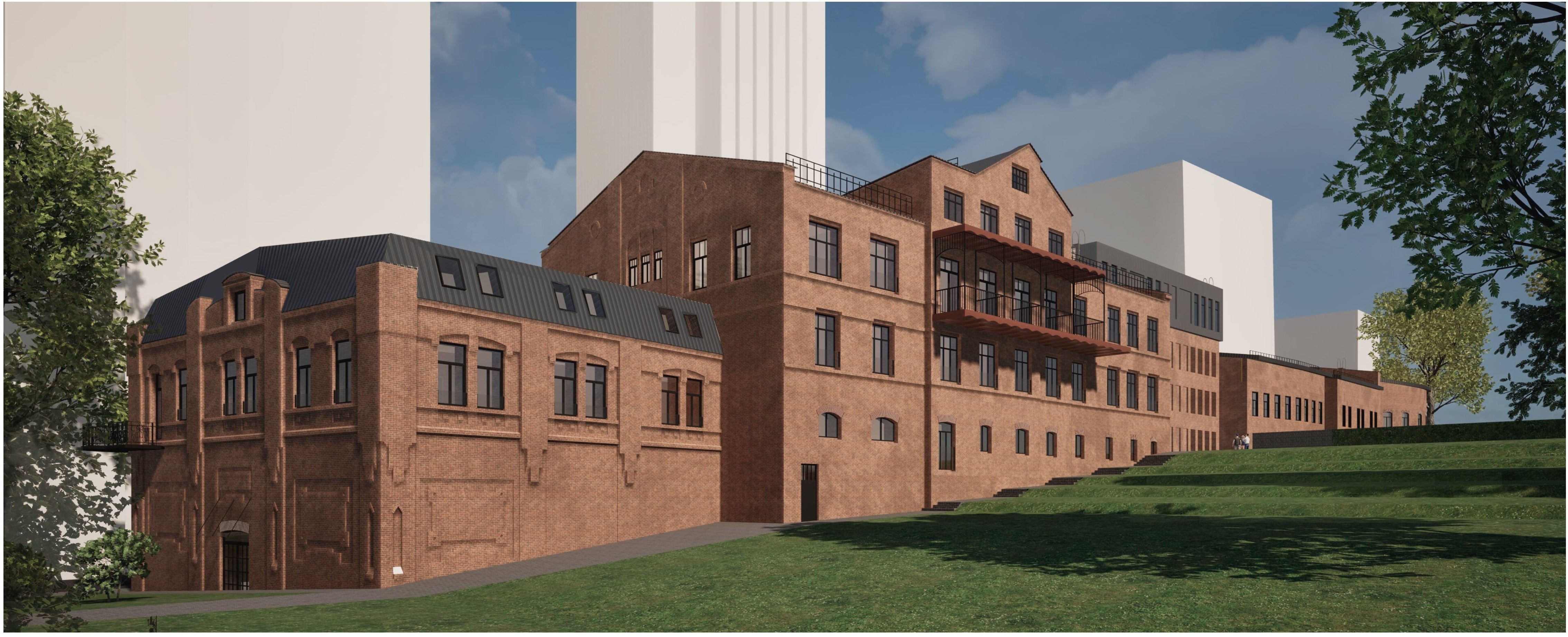 Объект на улице Гаршина станет связующим звеном между зданиями бывшей мельницы Башкировых. Архитектурный облик разработало ООО "Асгард".