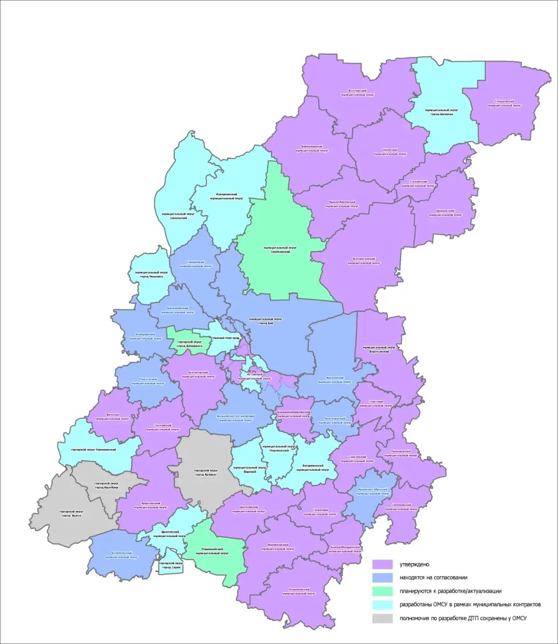 В 2025 году также завершены работы по утверждению новых генеральных планов и правил землепользования и застройки для семи округов области: Ардатовского, Сергачского, Сеченовского, Спасского, Воротынского, Шатковского и Большемурашкинского.
