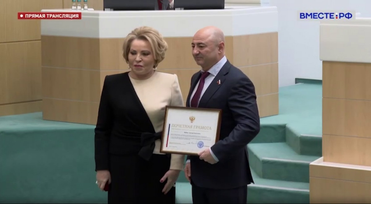 Спикер Совета Федерации Валентина Матвиенко вручила почетную грамоту Александру Вайнбергу, который досрочно сложил полномочия сенатора.