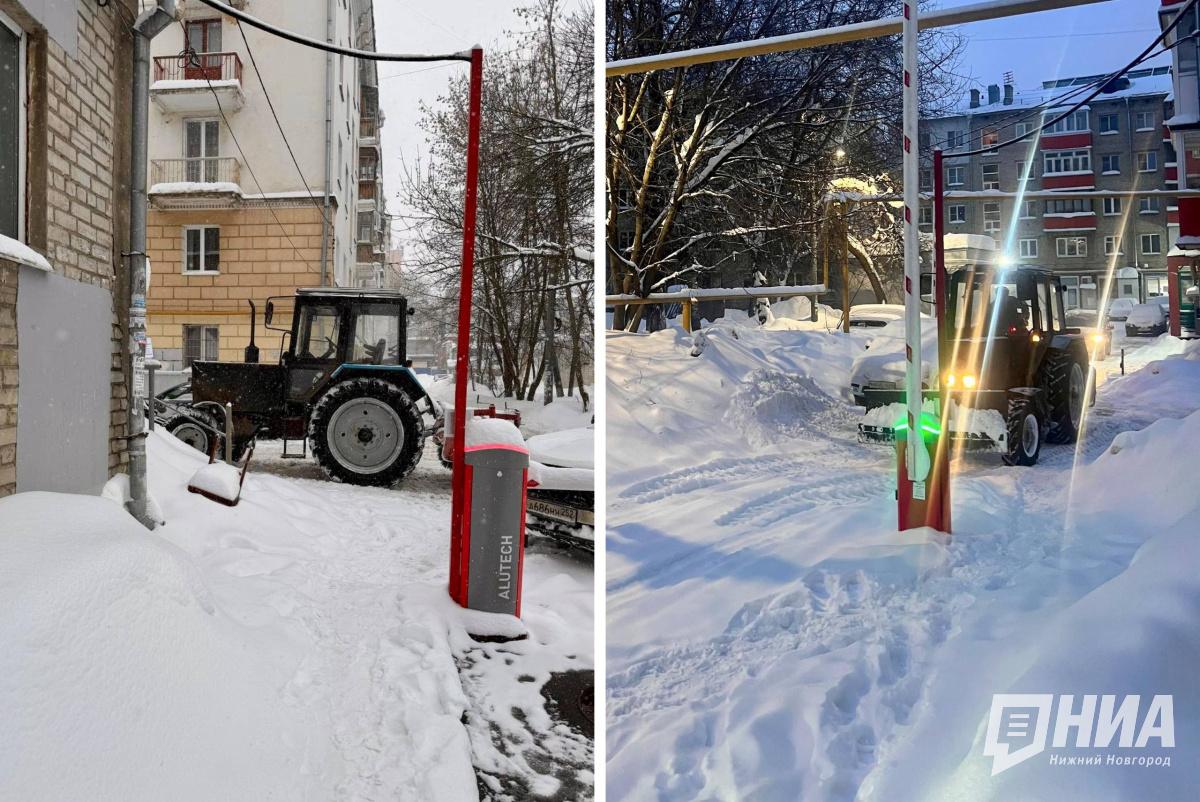 К концу января ситуация только ухудшилась. 28-го числа приехал другой трактор и, не убрав снег, снес маленький забор у шлагбаума.
