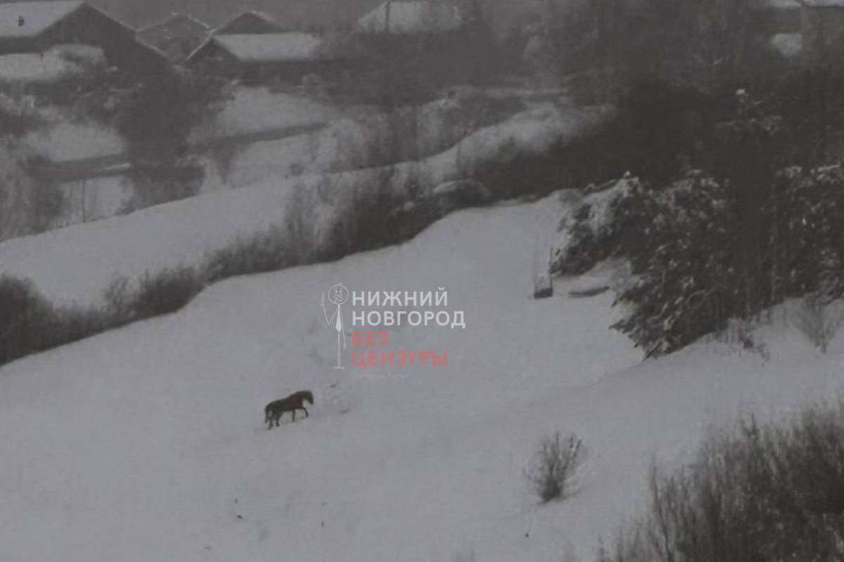 Одинокую лошадь заметили 31 января в полях около деревни Новопокровское в Нижнем Новгороде. Об этой ситуации сообщает телеграм-канал "Нижний Новгород. Без цензуры".