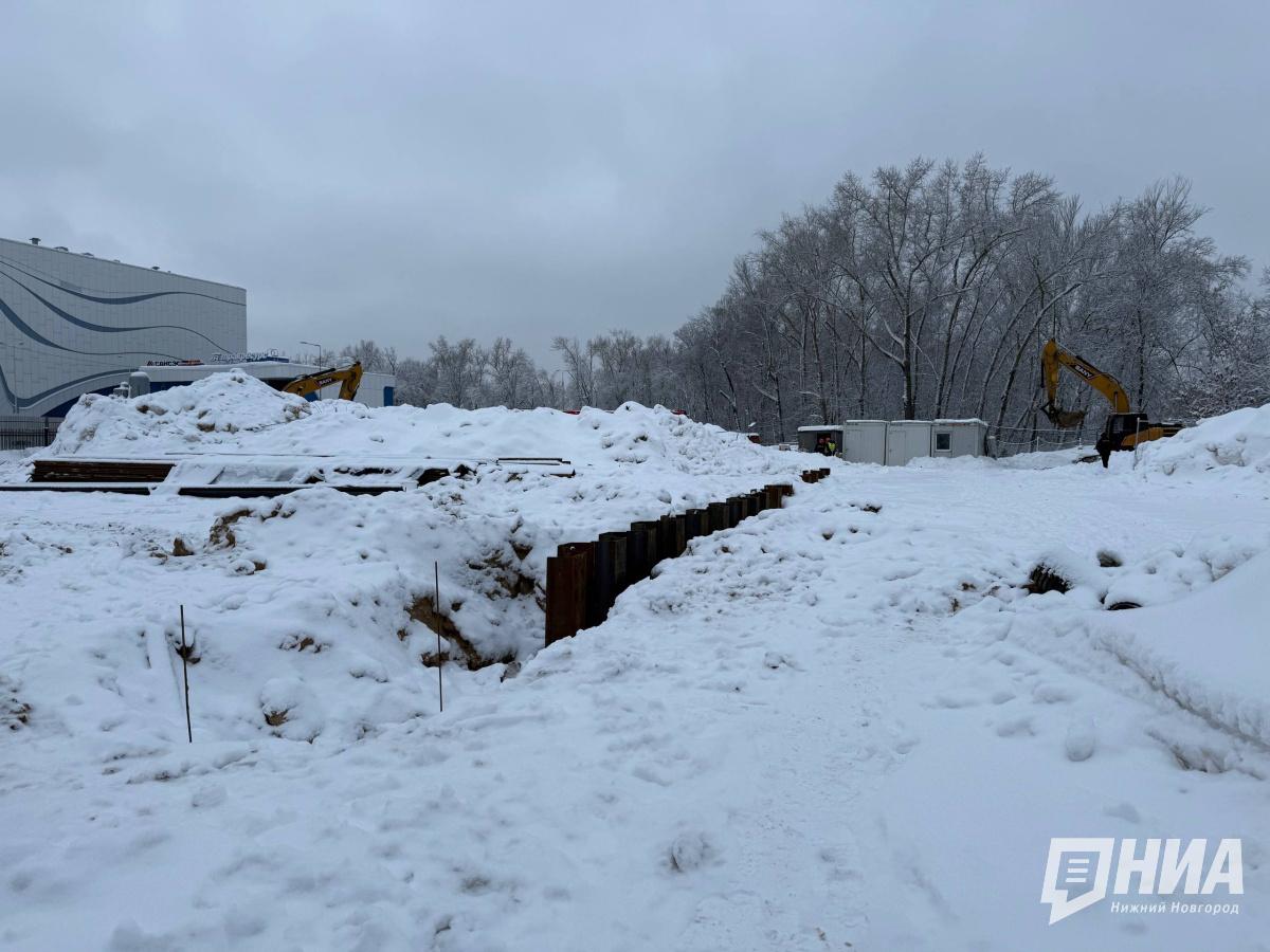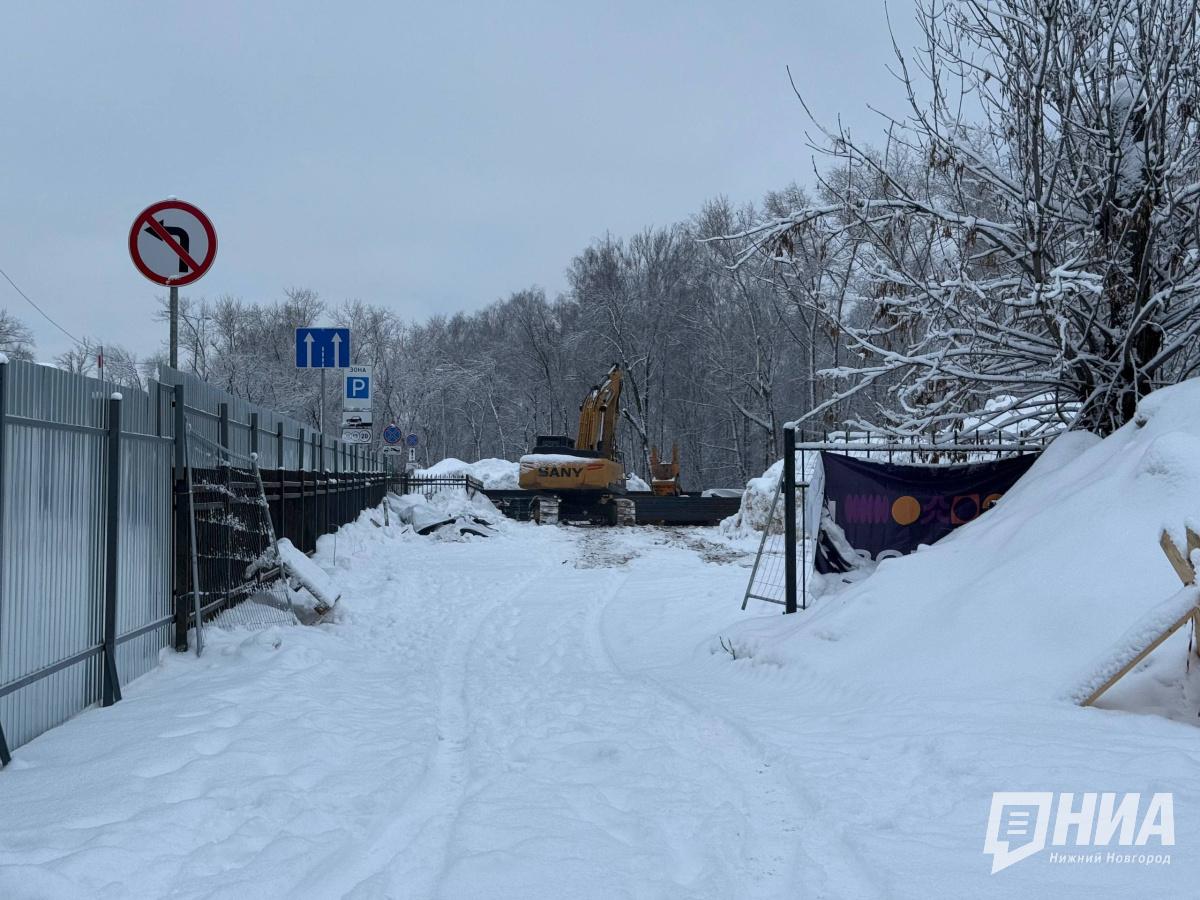 Корреспондент НИА "Нижний Новгород" побывала на месте строительства и увидела, что площадка обнесена забором, на территории стоит техника.