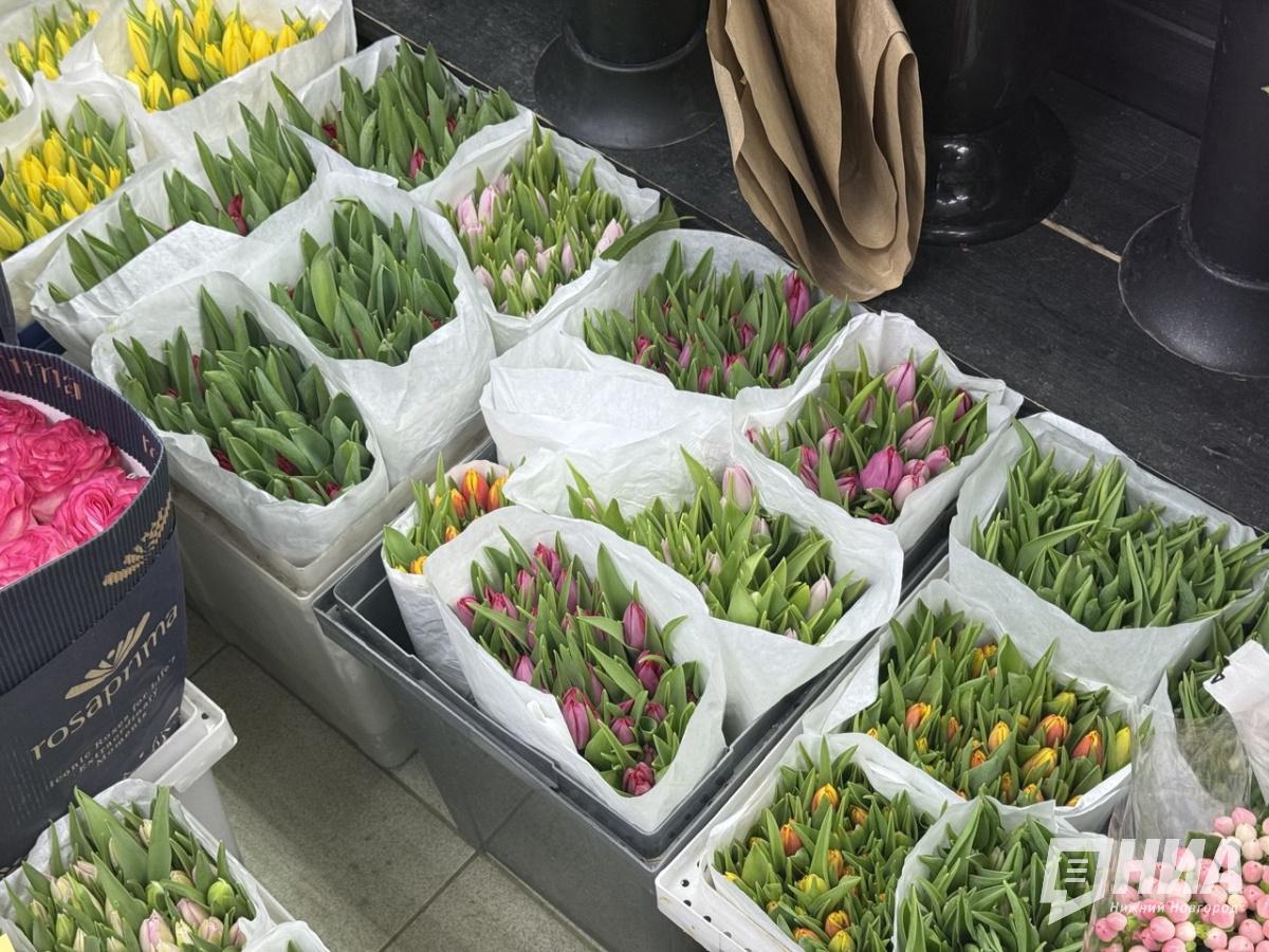 До Международного женского дня остаются считаные дни, потому цветочные магазины в Нижнем Новгороде работают в усиленном режиме. По традиции именно букет становится главным подарком для мам, жен, сестер и дочерей. Корреспондент НИА "Нижний Новгород" выяснила, в какую сумму обойдется праздничный букет и какие цветы, помимо тюльпанов, выбирают покупатели.