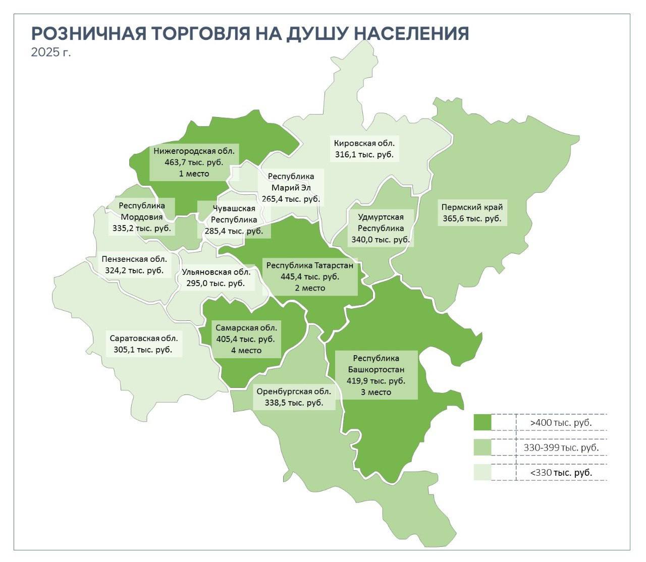 Нижегородская область заняла первое место в Приволжском федеральном округе по обороту розничной торговли на душу населения, превысив среднероссийское значение. Об этом в своем телеграм-канале написал замгубернатора Егор Поляков.
